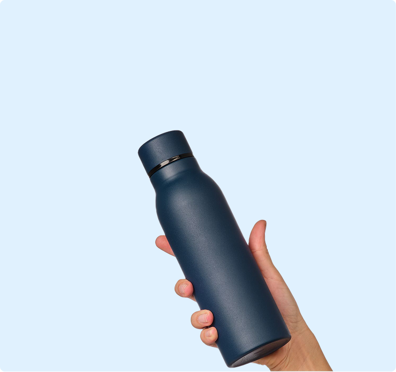 learn moreOur smart water bottle is equipped with a UV-C LED light built into the lid.UV-C is a type of ultraviolet light that can kill up to 99.9% of bacteria and viruses by breaking down their DNA. Just by the press of a button.